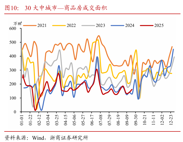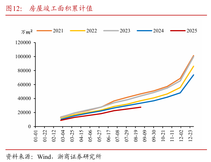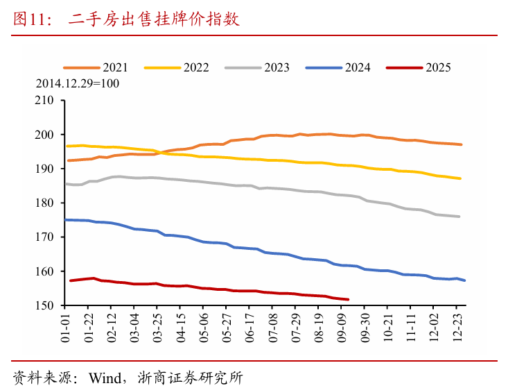 3、投资地产相关数据中成交量数据有所回暖。二手房出售挂牌价指数,房屋竣工面积累计值仍低于历年同期水平。