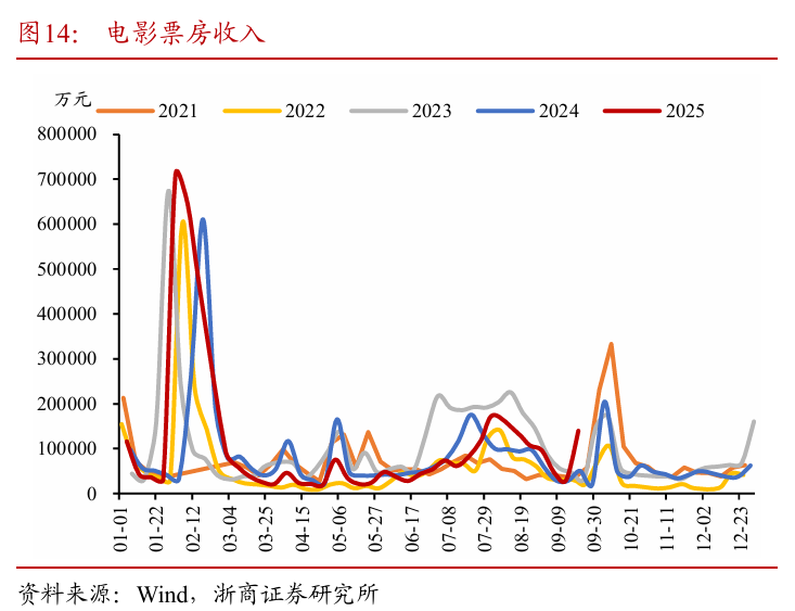 4、出行消费数据相对分化。一线城市地铁客运量涨跌分化;乘用车零售量和电影票房收入都上涨;执行航班数量下降。