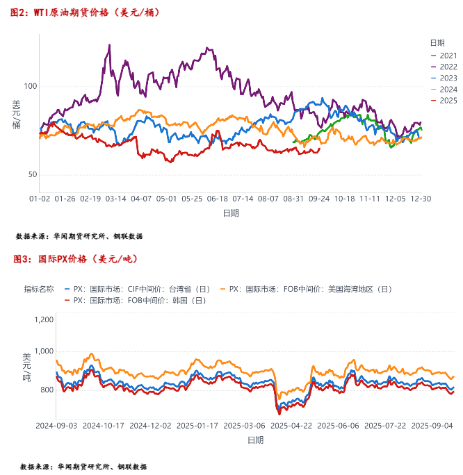 九月份为原油消费旺季周度日均产量继续维持在高位,原油供应端变化有限,此外美国及日本炼厂开工率继续维持较高水平,对原油的需求较为旺盛,国际原油大幅回落后震荡运行,由于需求端强劲,国际原油底部支撑偏强。进十月份后,前期欧佩克的原油增产计划逐步得到落地,十一月份欧佩克或继续增产原油;另一方面美国原油消费旺季结束。预计四季度原油供应或进一步宽松,聚酯上游成本仍有走弱预期。截止9月25日,韩国PX的FOB价格从月初的826.67美元/吨跌至795美元/吨,整个九月份整体呈现震荡走弱的趋势。