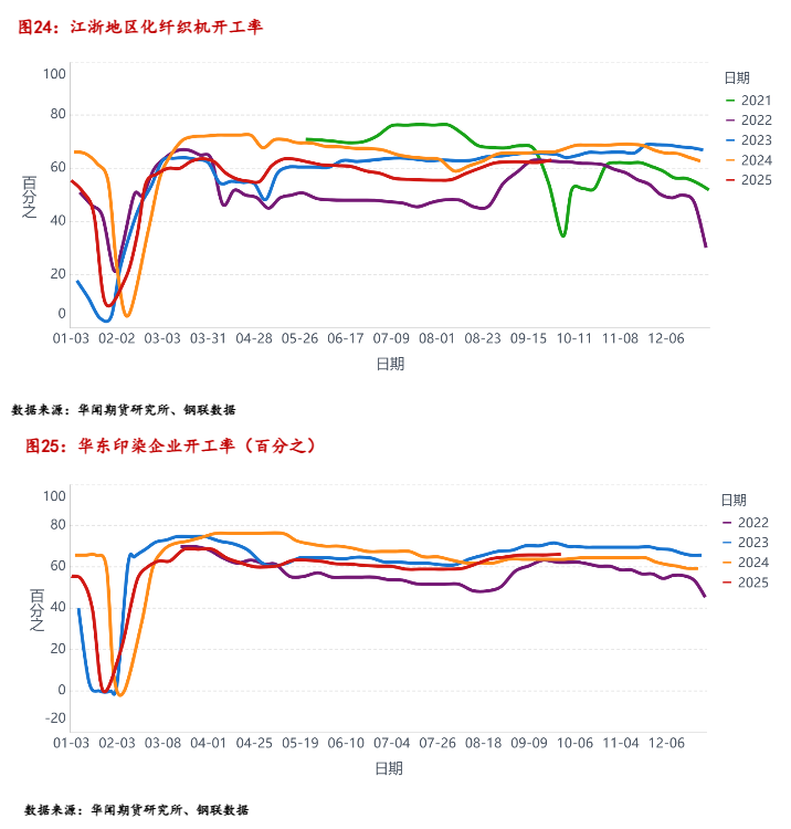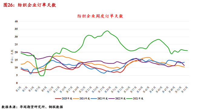 从纺织的季节性需求来看,每年8-9月份为纺织旺季,江浙地区织机开工负荷上调,纺织企业周度订单量呈现上涨后回落的趋势。