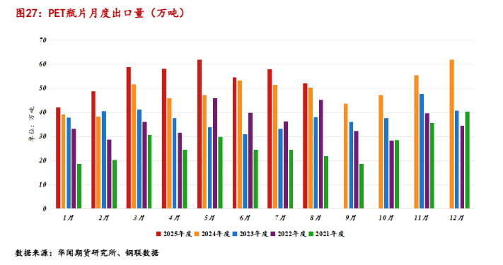 瓶片方面,除了成本端塌陷预期外,瓶片四季度出口需求或偏强,十月份出口需求或小幅回升,但出口水平仍处于年内低位,预计瓶片十月份供需仍偏弱,远期需求或偏强,需求方面整体呈现出近弱远强的格局,瓶片的价格走势主要跟随成本端变化。