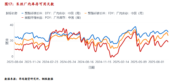 9月份长丝整体开工率维持高位,开工水平变化十分有限。从长丝日度产销率来看,产销率波动有限,月底下游逢低补库。