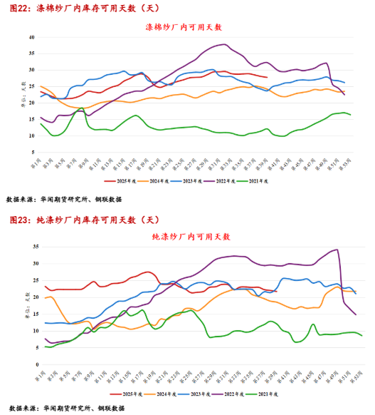从短纤厂内库存可用天数来看,整个九月份库存呈现出去库状态,库存水平由6.97天降低至6.36天,随着十月份纺织需求的回落,预计库存去化后再度回升。