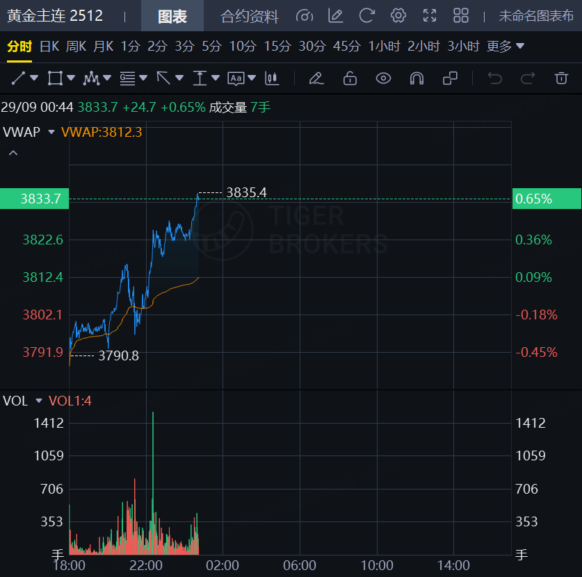 9月29日,现货黄金周一首次升穿每盎司3800美元,因投资者对美联储今年将进一步降息的预期升温,同时美元走软为金价提供额外支撑。现货黄金周一涨至3805美元/盎司,美国12月黄金期货上涨0.6%,至3830美元。