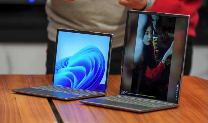 图:在CES 2025国际消费电子展上,联想推出全球首款卷轴屏PC——ThinkBook Plus Gen 6。