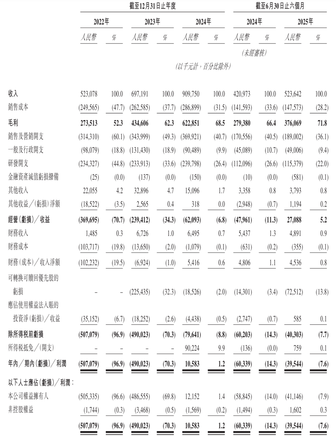 聚水潭2022年、2023年、2024年经调整净利分别为-3.79亿、-2.06亿、4899万元;2025年上半年经调整净利为4696万元,上年同期为经调整亏损3344万元。
