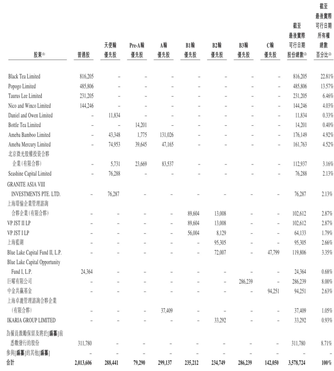VPJST II LP持股2.87%,上海蓝湖持股为2.66%,中金共赢基金持股为2.63%,GGV VIII持股为2.13%,VP JST I LP持股为1.79%。上海卓漉管理咨询合伙企业持股为1.05%。