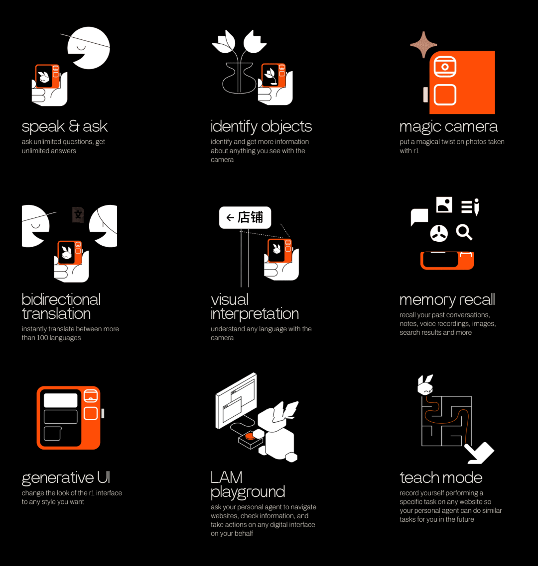 当时,Rabbit R1 甫一亮相,这个亮橙色的小方块和 Teenage Engineering 的设计让它迅速走红。