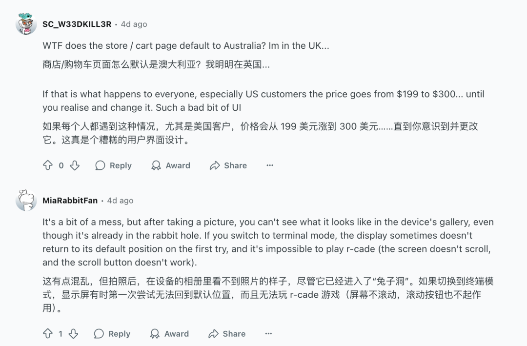 Rabbit 已经是这条赛道上比较平衡的选手,然而在初期也逃不过“套壳”的评价,被质疑“干不过一个 App”。