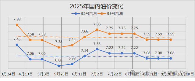 2025年,国内油价已经历了19次调整(分别为6次上调和7次下调和6次搁浅),当前正在进行的是2025年第20次油价动态调整。
