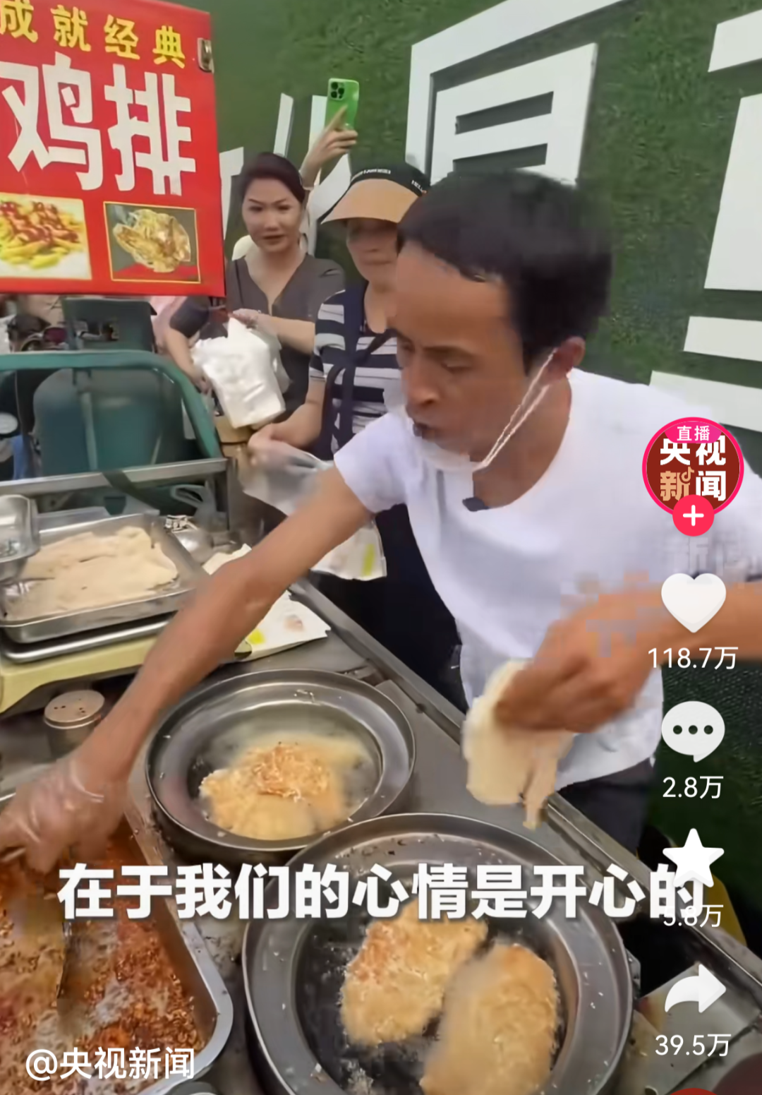 “你可以拒绝我,但是请你不要拒绝美味”“如果不及时吃,导致鸡排不脆,我将停止对你的售卖”“你要对自己好一点,再好一点点”……这些被网友们自觉传播开来的新晋网红景德镇“鸡排哥”的“魔性喊话”,成为今年国庆假期景德镇最新的文旅名片。9月份意外走红的景德镇“鸡排哥”,以其接地气的金句和幽默的“脱口秀式”销售,为游客们带来满满的情绪价值,更以日增粉丝19万的人气一并创造着商业价值:影响力迅速溢出小吃摊,带动周边摊贩生意,进而带动景德镇国庆期间酒店价格飙升,景德镇市文化广电旅游局迅速反应,聘任其为“文旅推介官”。