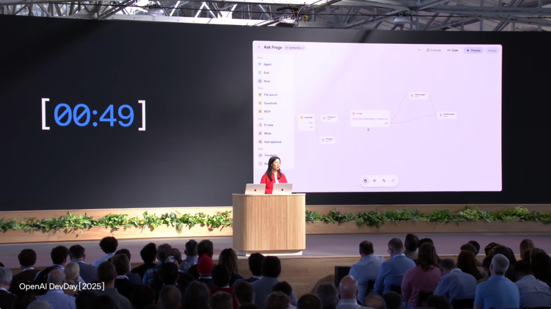仅用时 7 分 11 秒,OpenAI 员工就为 Dev Day 网站从零搭建了 AI 助手。通过可视化方式添加分类 Agent 、路由节点、Sessions Agent 处理会议日程、Dev Day Agent 处理通用查询,还加了 PII 防护。