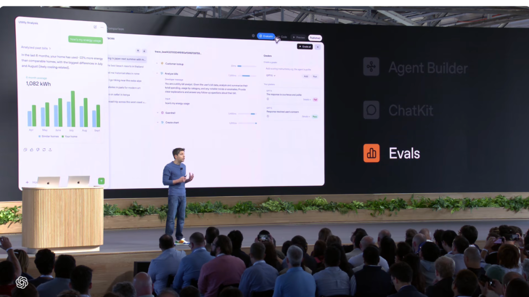 去年 OpenAI 推出了 Evals,帮开发者测试提示词并衡量模型行为,今年则新增了四项强大能力:数据集、追踪评分、自动提示词优化、第三方模型支持。