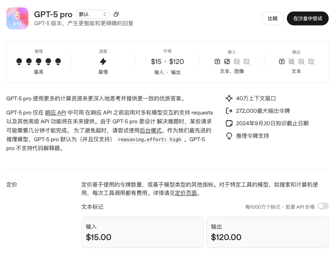 GPT-5 Pro 正式向所有开发者开放 API 访问。