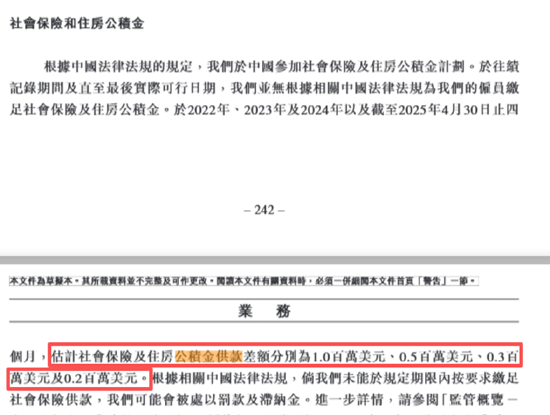 令人费解的是,前后两版招股书,公司欠缴社保公积金的金额非但未减少,反而增多了。其中,2022年欠缴金额由90万美元增加至100万美元。