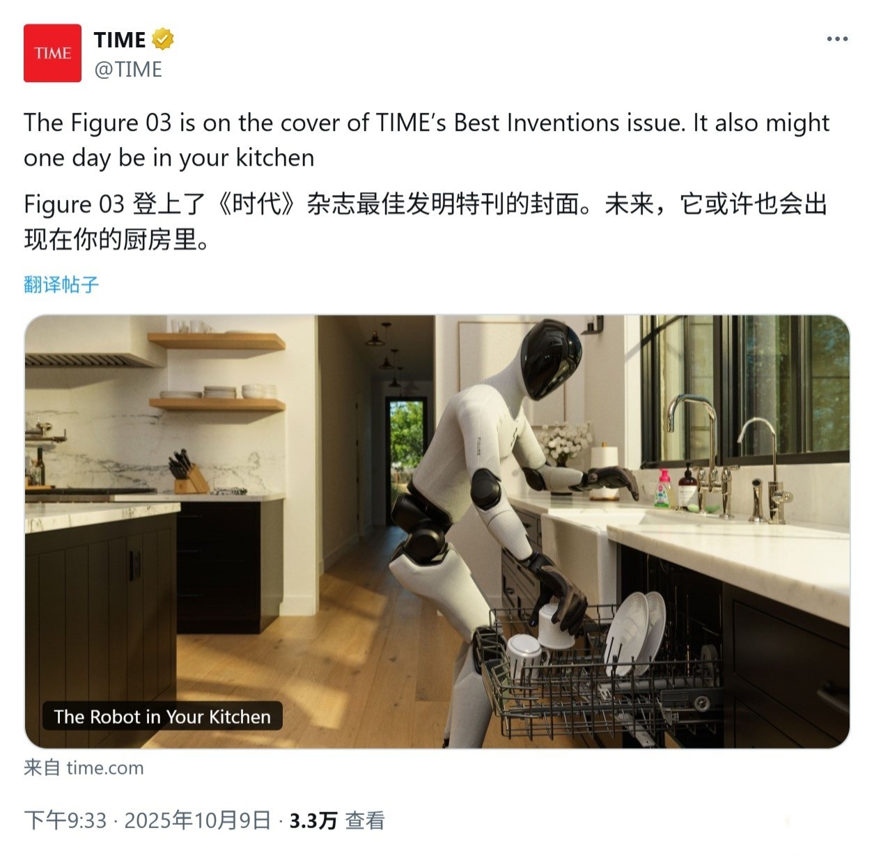 IT之家查询公开资料,发现 Figure 03 和 Unitree R1 等一起,入选为《时代》杂志 2025 年最具发明机器人榜单。