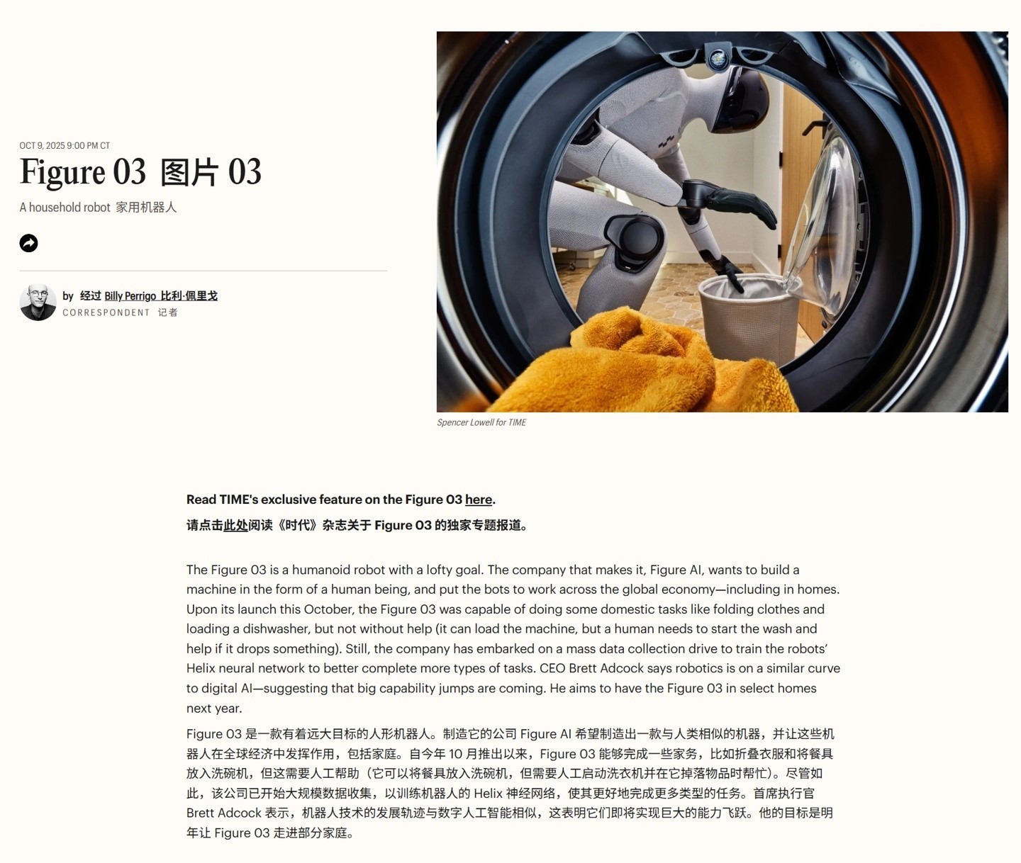 Figure 03人形机器人登场:身高1.68米,能洗碗叠衣包揽家务