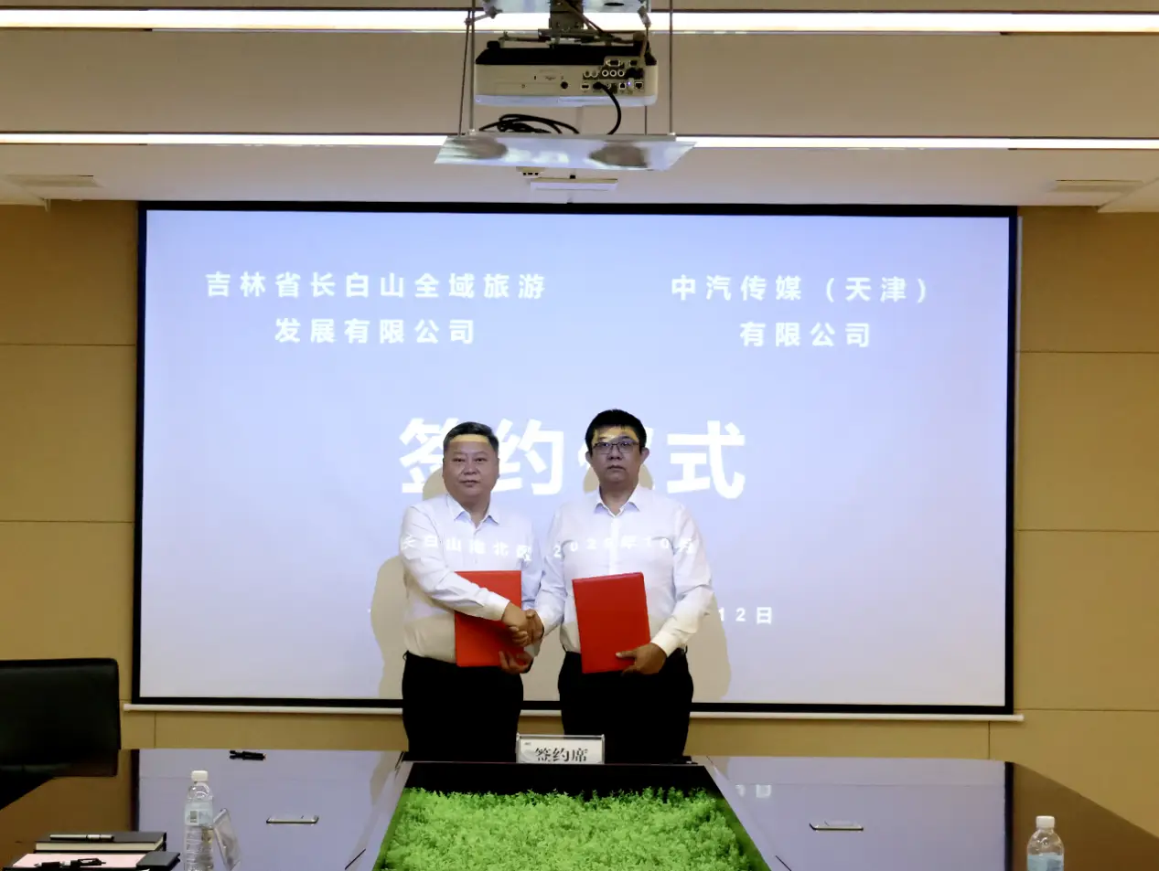 10月12日,中汽传媒(天津)有限公司(以下简称“中汽传媒”)与吉林省长白山全域旅游发展有限公司(以下简称“长白山旅发”)在吉林举行战略合作框架协议签约仪式。中汽传媒总经理赵博文、长白山旅发党委书记、总经理杨家焱出席签约仪式。