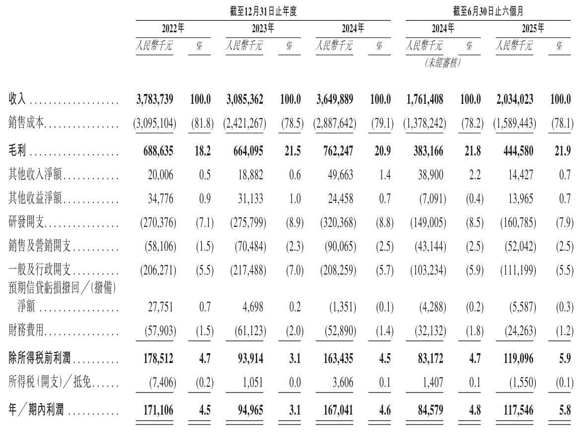 剑桥科技2025年上半年营收为20.34亿元,毛利为4.45亿元,毛利率为21.9%;期内利润为1.18亿元,期内利润率为5.8%。
