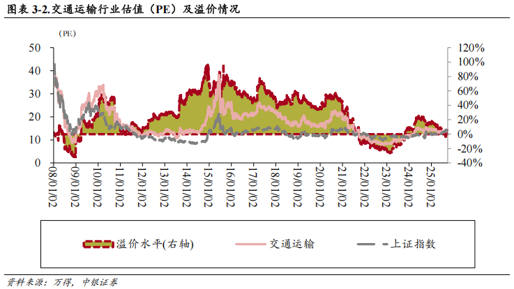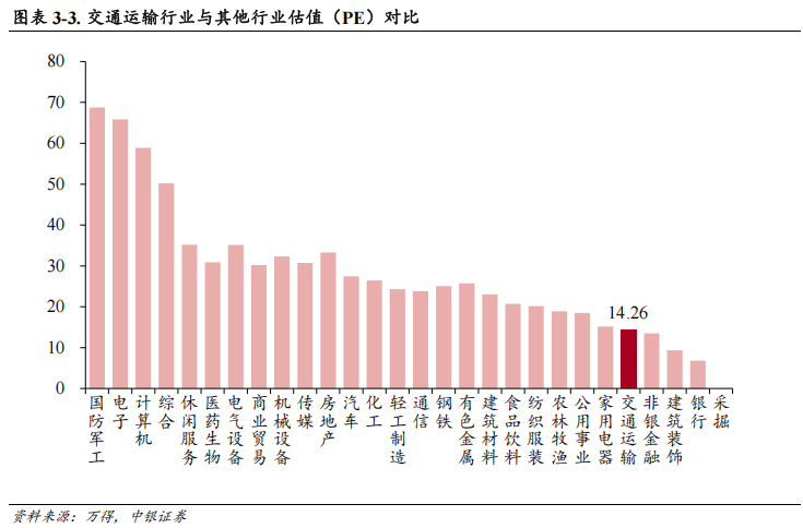 截至2025年10月10日,交通运输行业市盈率为14.26倍(TTM),上证A股为14.33倍。