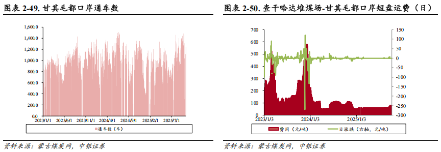 9月20日-9月26日,查干哈达堆煤场-甘其毛都口岸炼焦煤短盘运费日均72.43元/吨;9月22日-9月28日,通车数环比上涨0.64%,日平均通车1139.57辆。查干哈达堆煤场-甘其毛都口岸炼焦煤短盘运费环比上涨,9月20日-9月26日均值达72.43元/吨。