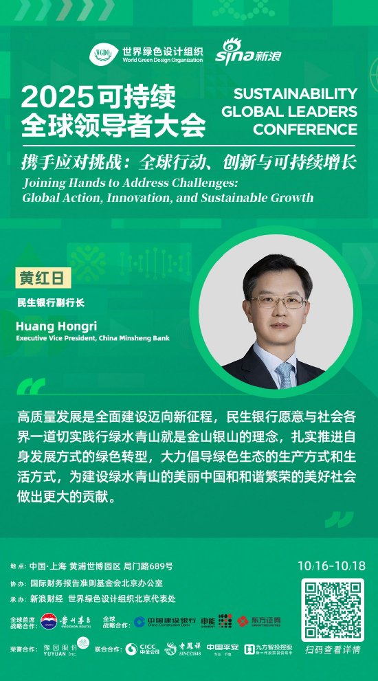 2025可持续全球领导者大会于10月16日-18日在上海市黄浦区世博园区召开。民生银行副行长黄红日结合民生银行ESG实践,谈及五点体会。