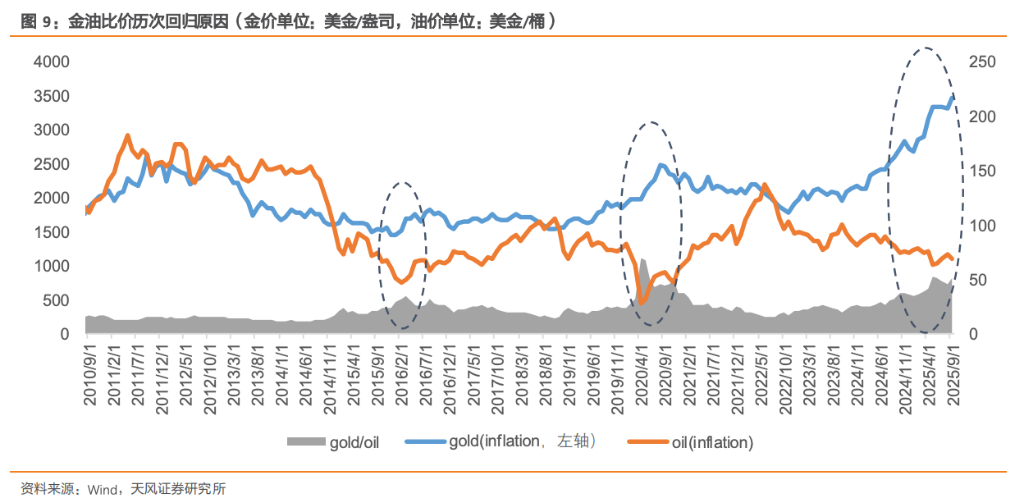 当前金油比价是历史次高,仅次于2020年疫情原油胀库负价格阶段。 我们认为定价因素差异——