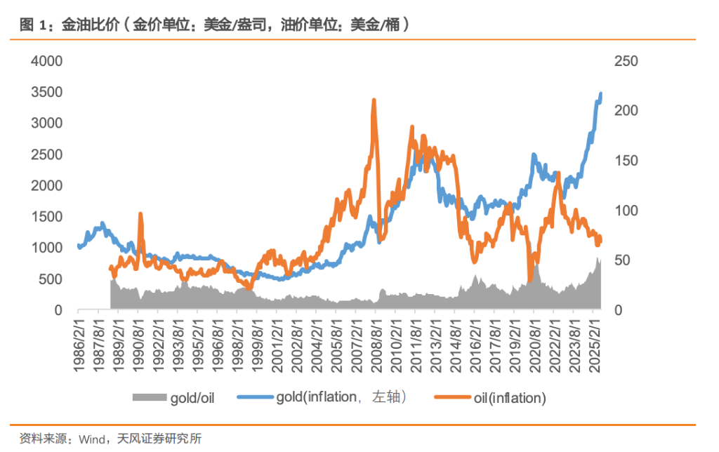 天风证券最新研报认为,当前金油比价处于历史高位,核心原因在于两者定价逻辑分化:原油由基本面主导,而黄金由宏观情绪驱动。历史上,比价的极端值均由油价暴跌所致,其回归也始于实体改善带动油价反弹。值得注意的是,在比价见顶回落后,金价往往会在4-5个月后随之见顶。