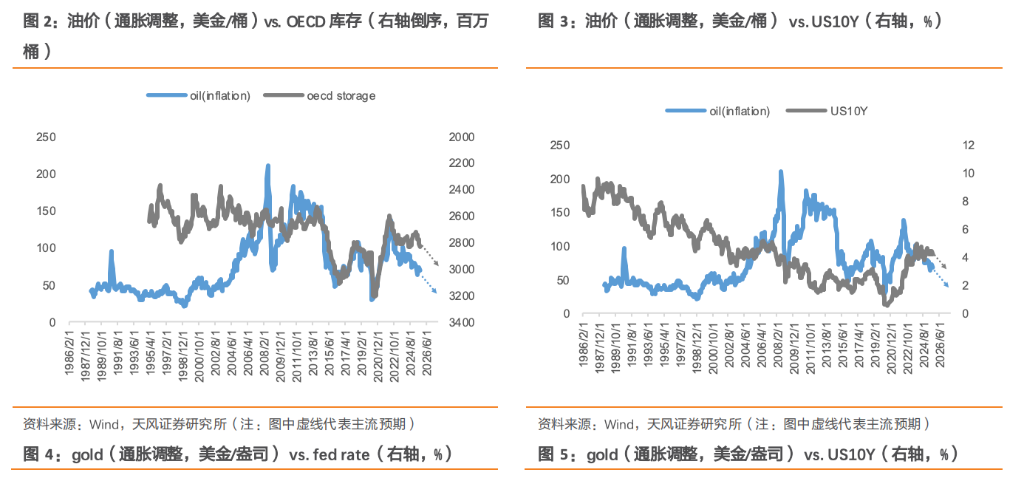 1)原油是基本面定价,过去十年,油价紧跟基本面(OECD 原油库存),当下 OECD 原油 库存处于中等偏低水平,但是油价率先下跌,因为市场预期 2026 年原油基本面持续宽松 会加剧累库。