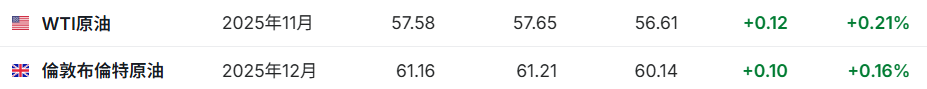 3. 截至发稿,WTI原油涨0.21%,报57.58美元/桶。布伦特原油涨0.16%,报61.16美元/桶。