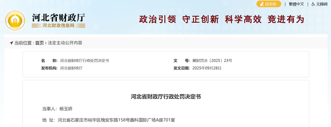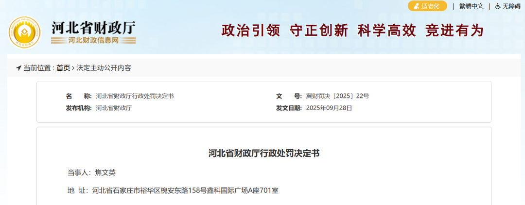 依据《中华人民共和国注册会计师法》第三十九条第二款、《会计师事务所执业许可和监督管理办法》第七十条第一款、《河北省财政系统行政处罚裁量基准》第3条较轻裁量幅度的规定,本机关决定给予你警告的行政处罚。