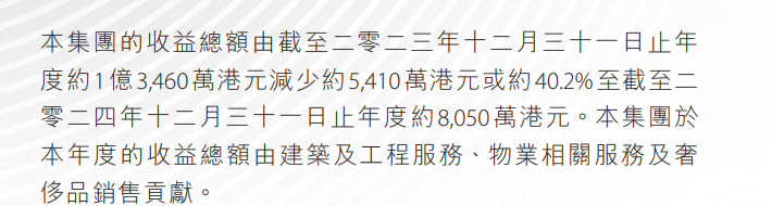 2024年,公司全年收益从2023年的1.346亿港元直接“跳水”,暴跌40.2%至8050万港元。