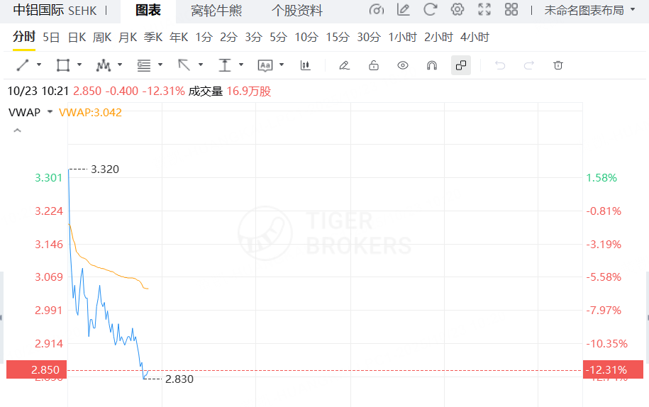 10月23日,中铝国际回落逾12%,其上一交易日暴涨30%。