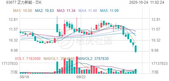 10月24日,正力新能盘中续跌8%,近六个交易日累跌约25%。