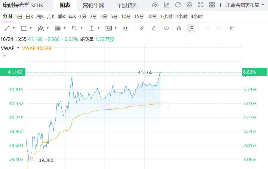 10月24日,康耐特光学盘中涨超6%,报41.16港元。