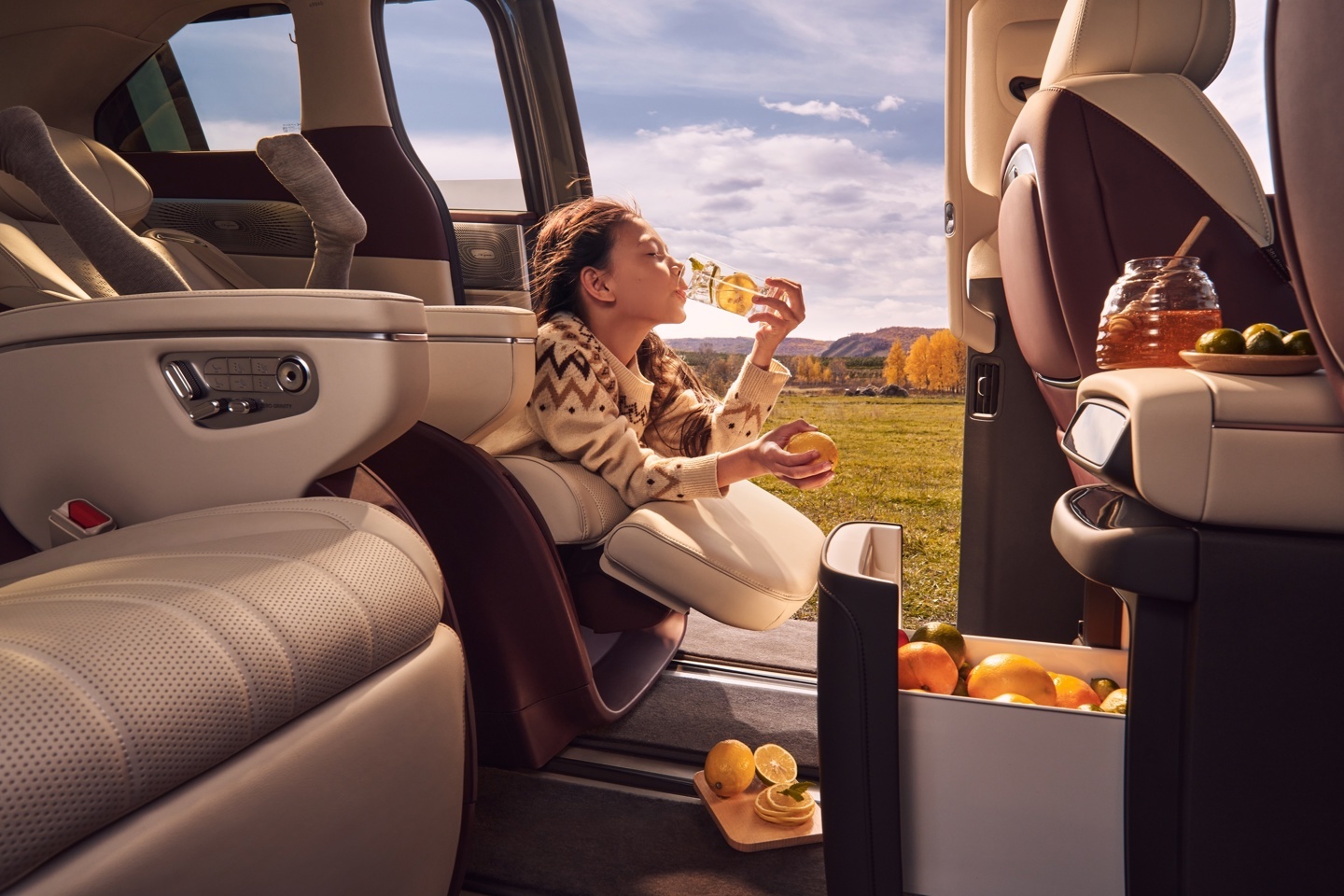 从图片来看,新车第二排配备独立座椅,支持“零重力”模式,有望配备车载冷暖箱。
