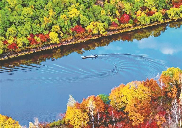 秋日的双鸭山风光旖旎,五彩斑斓。饶河乌苏里江湿地,层林尽染,风光无限。