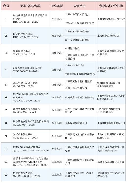 活动中,12项获评2025年“上海标准”的项目发布,包括科技成果分类评价和价值潜力评价规范、国际医疗服务规范、深海智能挖沟铺缆机器人、城市轨道交通TACS系统技术规范等。这些标准达到了国内领先、国际先进或者填补国际、国内空白的要求,在各自领域内具有先进性和创新性。