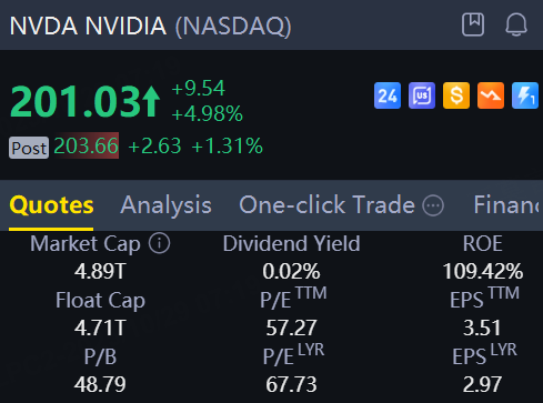 Nvidia's stock closed almost 5% higher, adding over $230 billion in market value, bringing its total value to $4.89 trillion after briefly touching $4.94 trillion.