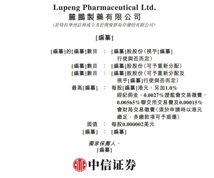 智通财经APP获悉,据港交所10月31日披露,麓鹏制药有限公司向港交所主板提交上市申请书,中信证券为独家保荐人。
