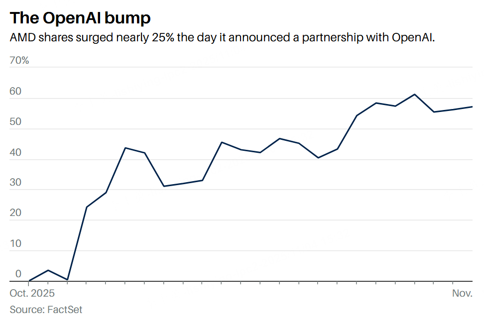 This thinking has been a key part of how many analysts are explaining the stock surges. After AMD shares jumped over 20% on the news of its OpenAI deal, Bank of America senior analyst Vivevk Arya raised his 12-month price target on shares to $250 from a prior target of $200.
