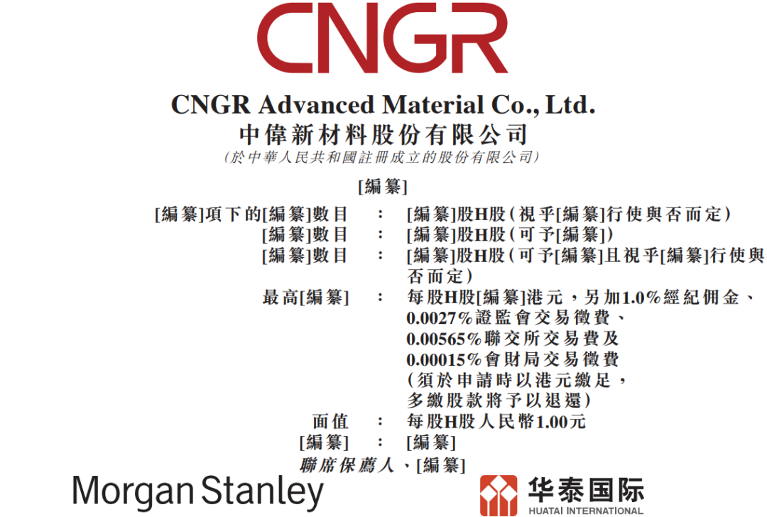 据港交所10月31日披露,中伟新材料股份有限公司(300919.SZ)通过港交所主板上市聆讯,摩根士丹利、华泰国际为联席保荐人。