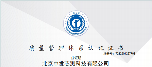 近日,中关村发展集团旗下北京中发芯测科技有限公司(以下简称“中发芯测”)技术服务全流程成功通过ISO 9001:2015质量管理体系认证。这标志着中发芯测在质量管理标准化、规范化和国际化建设中迈出重要一步,也为技术服务的持续优化与提升奠定了坚实基础。