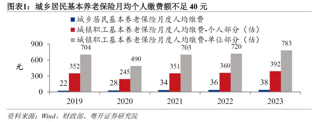 《“十五五”规划建议》提出“逐步提高城乡居民基础养老金”,这一要求指向当前城乡居民养老保险面临的待遇偏低问题,提高城乡居民养老金水平是完善基本养老保险体系、提高社会保障水平、提振消费的重要举措。我国的基本养老保险包括城镇职工养老保险和城乡居民养老保险,城镇职工养老保险主要依靠用人单位和职工缴费运行,城乡居民养老保险面向农村居民、城镇非正规就业人员等中低收入群体,主要依赖财政补贴运行。此前我们在前期报告《完善基本养老保险体系的四个建议》中系统梳理过两者的差异和核心症结。