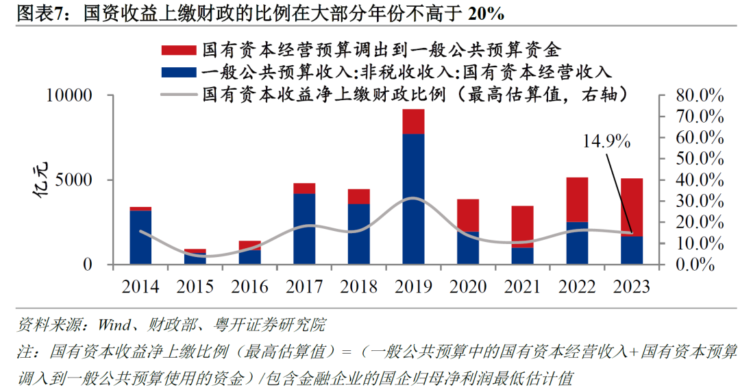 如果我国适度上调国资收益上缴财政比例至40%左右,则国资收益上缴财政的净规模将至少达到约1.4万亿,较2023年水平增加超过8000亿,能够覆盖全民最低养老金的增量资金需求。