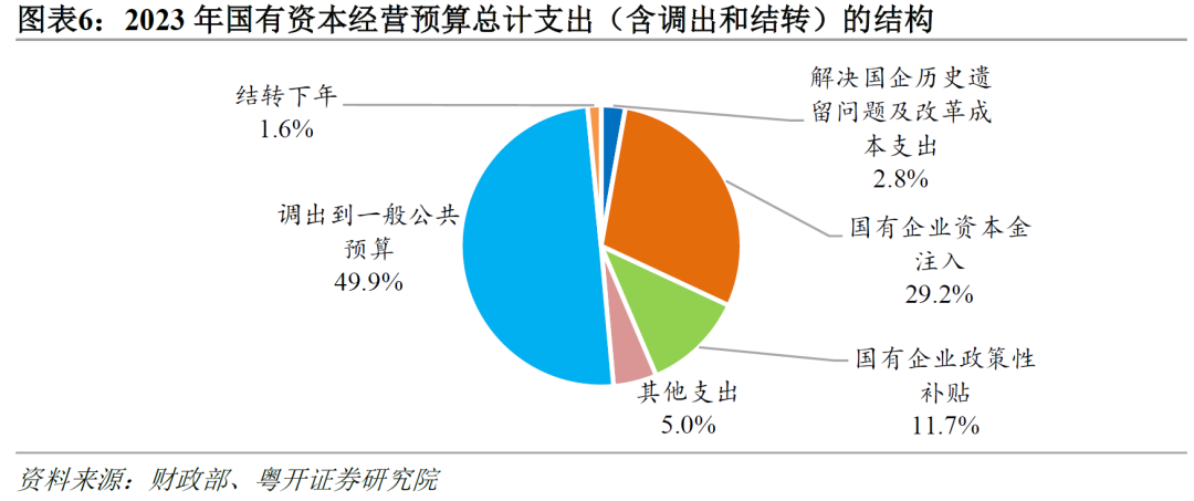 2014年以来,国有资本收益上缴财政净规模波动较大,大部分年份不超过5000亿。2019年,国有资本收益上缴财政净规模达到9000亿以上,为2014年以来的最高值;但2020-2021年疫情冲击,国企利润暂缓上缴,净上缴规模回落至4000亿以下;2022-2023年回升至5000亿以上。