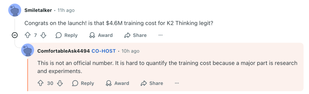 在此背景下,月之暗面团队在Reddit最活跃的AI社区LocalLLaMA进行了一场长达3小时的“回答一切”(Ask Me Anything)活动,吸引了近200条提问和数千条互动。