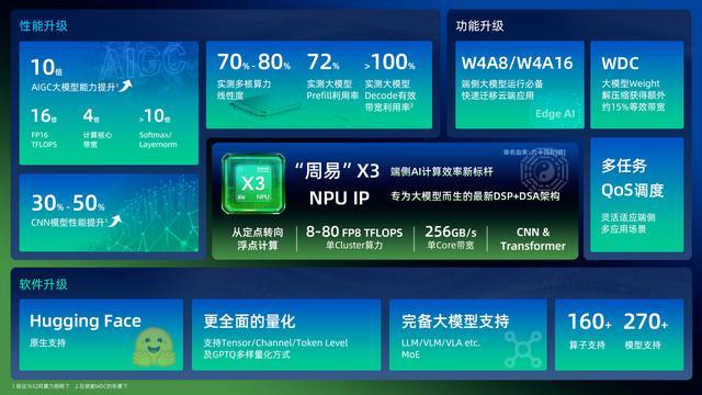 新的“周易”X3 NPU IP可以兼顾传统CNN架构与当下主流的Transformer架构,可以满足各类端侧大模型的计算需求,进而加速Gen AI、Agentic AI与Physical AI在端侧的落地。