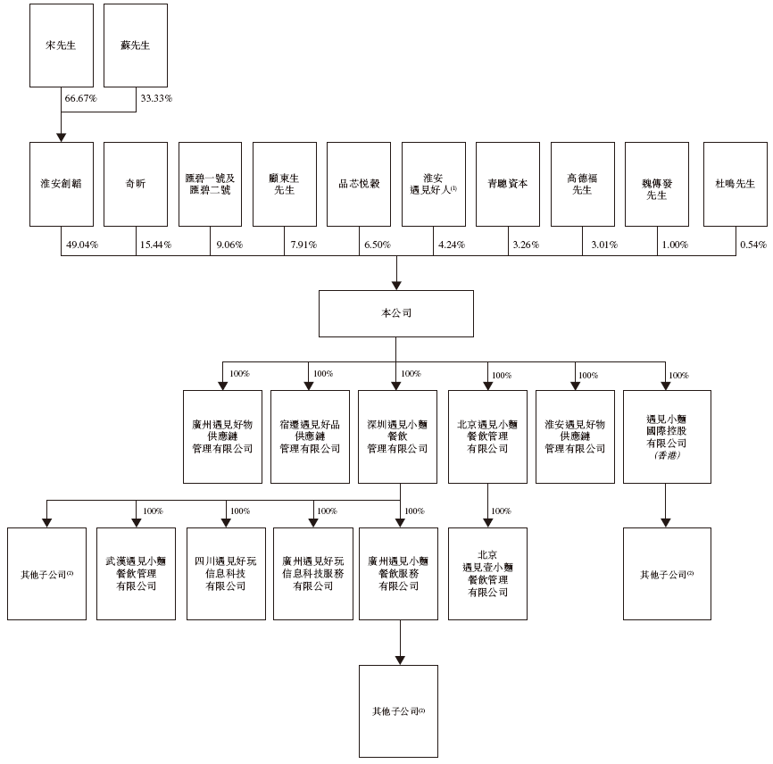 其他股东包括百福控股(01488.HK)、九毛九(09922.HK)、碧桂园(02007.HK)、青骢资本等。