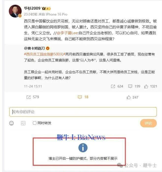 在罗永浩回怼后,华杉微博开启一键防护,被网友评论为想打又打不过。